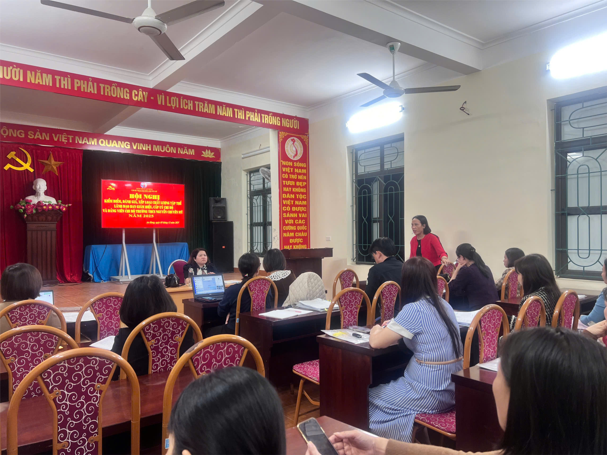 🔰✅Thực hiện sự chỉ đạo của Ban Thường vụ Đảng ủy xã An Hưng về công tác đánh giá chất lượng tổ chức cơ sở đảng và đảng viên hằng năm, chiều ngày 05/12/2025, Chi bộ Trường THCS Nguyễn Chuyễn Mỹ tổ chức Hội nghị kiểm điểm, đánh giá và xếp loại chất lượng tập thể và đảng viên năm 2025. Đây không chỉ là cuộc họp tổng kết cuối năm, mà còn là dịp để từng đảng viên và Chi ủy nhìn lại một năm phấn đấu, soi rọi ưu – khuyết điểm với tinh thần trung thực và cầu thị, qua đó góp phần đánh giá khách quan kết quả đạt được, phát huy ưu điểm và đề ra những giải pháp thiết thực cho năm công tác tiếp theo.