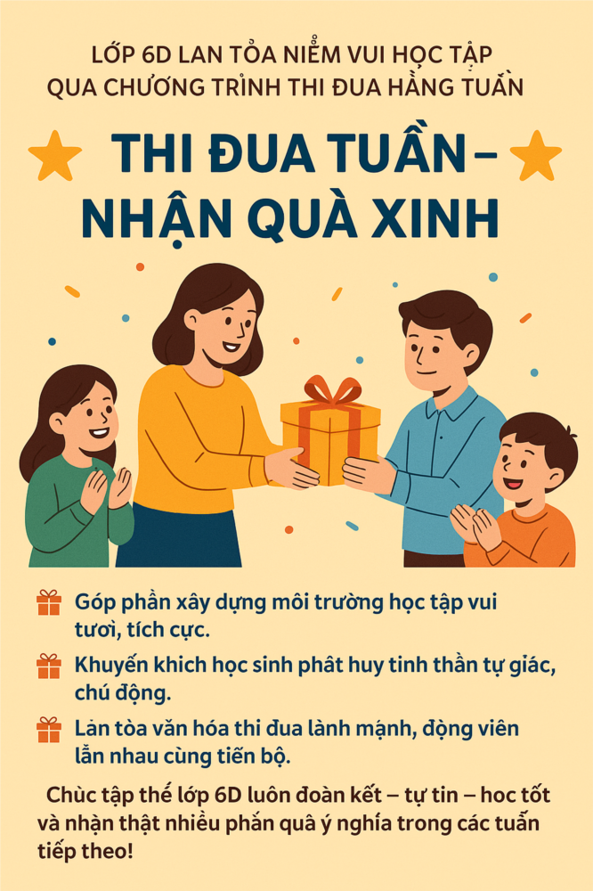 Nhằm tạo hứng thú học tập và khích lệ tinh thần nỗ lực của các em học sinh, lớp 6D chính thức triển khai hoạt động tặng quà thi đua hằng tuần.