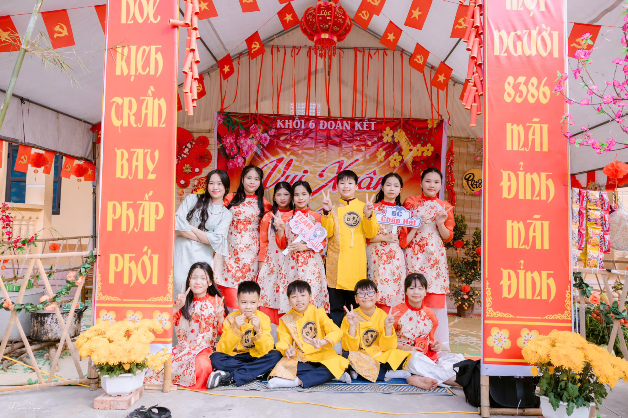 Với tiết mục nhảy múa "Cái Tết giàu", các bạn học sinh lớp 6C đã mang đến sân khấu sắc xuân rực rỡ, giai điệu vui tươi cùng phần dàn dựng công phu và trang phục truyền thống nổi bật. Tiết mục không chỉ cho thấy sự chuẩn bị chu đáo, mà còn thể hiện tinh thần đoàn kết và sự nhiệt huyết của tập thể lớp 6C.