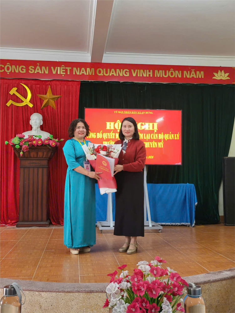 ✅Thực hiện Thông báo số 50-TB/ĐU ngày 12/01/2026 của Ban Thường vụ Đảng ủy xã An Hưng về công tác cán bộ, chiều ngày 30/1/2026, tại Trường THCS Nguyễn Chuyên Mỹ, Ủy ban nhân dân xã An Hưng tổ chức Hội nghị công bố quyết định về công tác cán bộ.